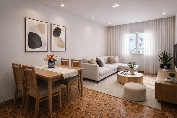 Imagens ambientadas com decoração meramente ilustrativa, utilizadas para sugestão de layout e aproveitamento dos espaços. Móveis, objetos decorativos e itens de ambientação não fazem parte da oferta do imóvel.