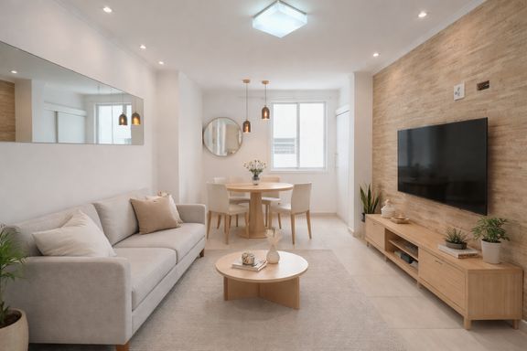 Sala de estar e jantar integradas
